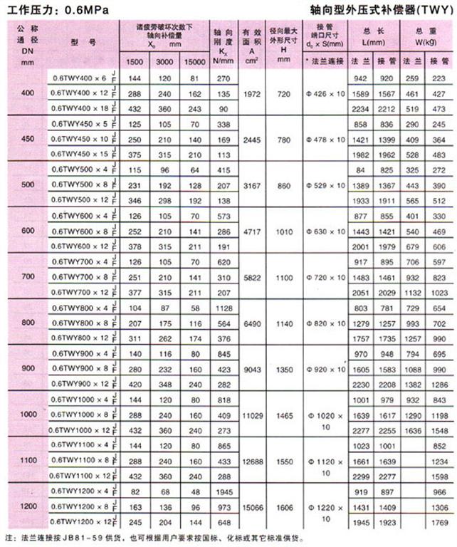 軸向型外壓式波紋補償器(TWY)參數(shù)2