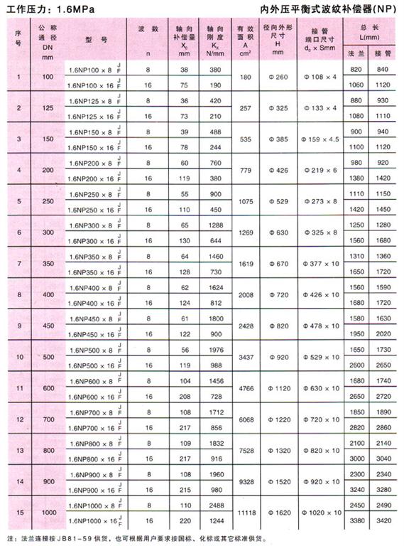 內外壓力平衡式波紋補償器(NP)參數2