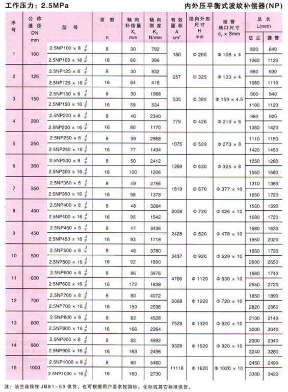 內外壓力平衡式波紋補償器(NP)參數3