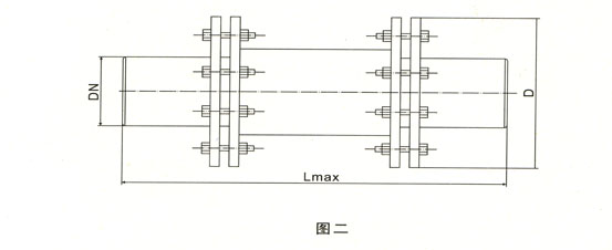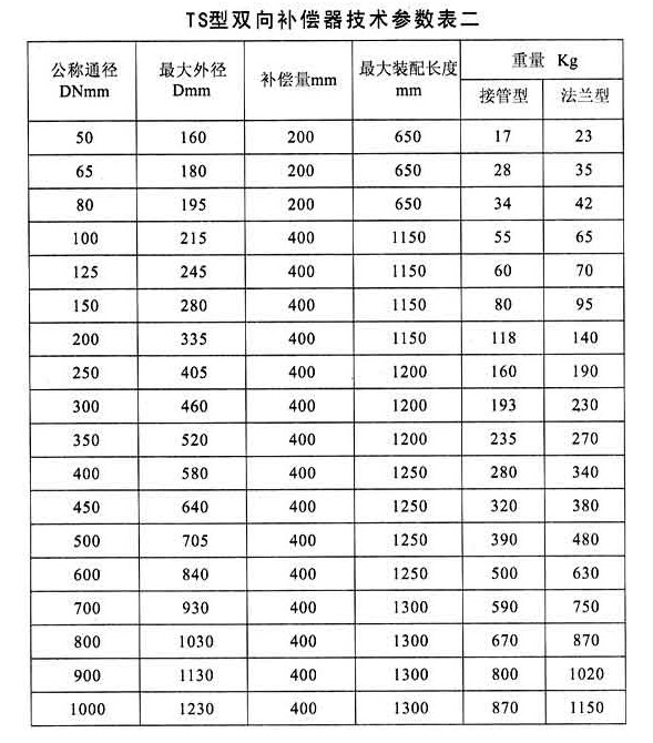 2、TS型雙向補(bǔ)償器技術(shù)參數(shù)見表2,結(jié)構(gòu)型式見圖二。